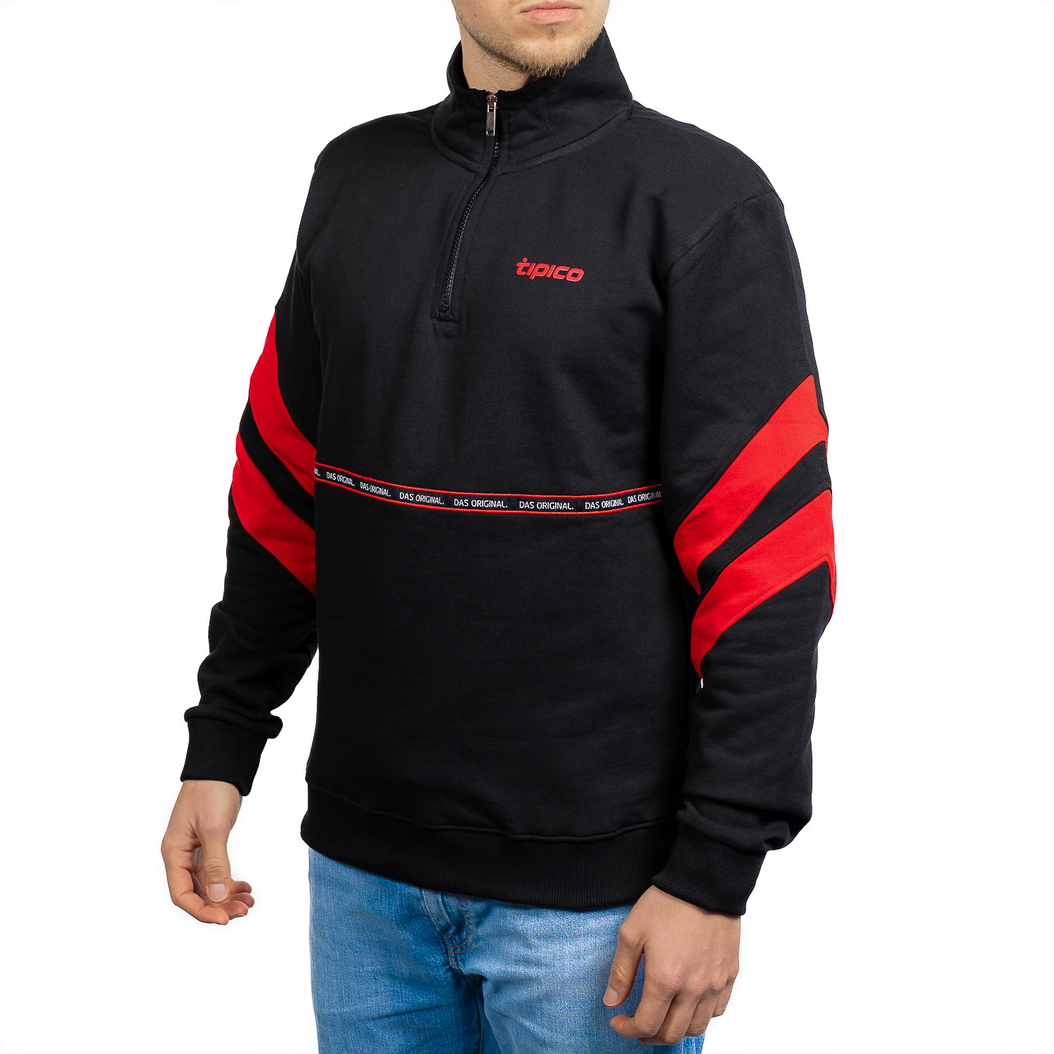 Der Half Zip Sweater verfügt über ein rotes Tipico High Density Logo auf der Brust, sowie hinten im Nackenbereich. Die Laufschrift "Das Original" macht den Sweater zu einem stylischen Hingucker. Atmungsaktiv und angenehm zu tragen durch 100% reine Baumwolle. Der halblange Reißverschluss bietet zudem individuelle Anpassungsmöglichkeiten, egal ob Stehkragen oder offen.