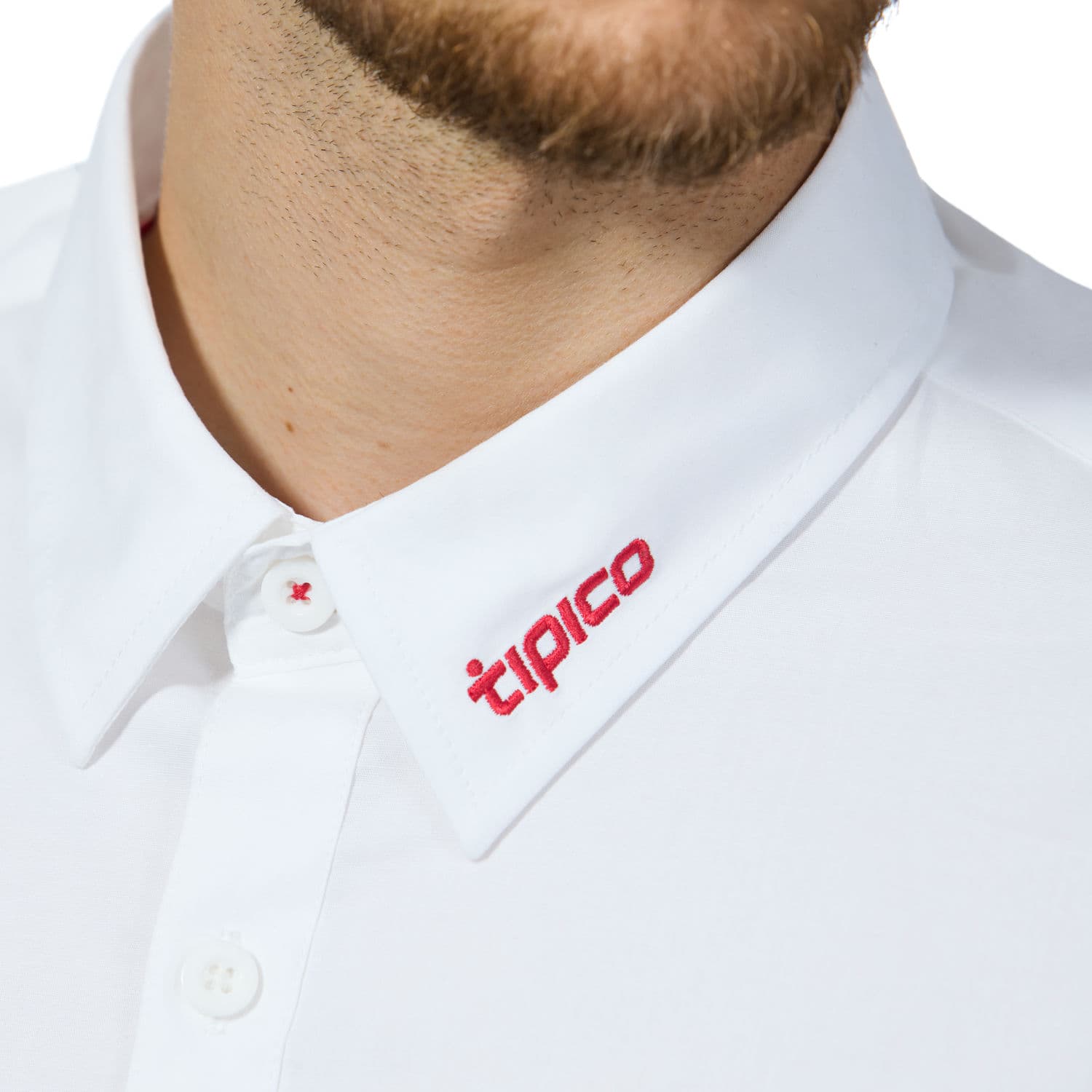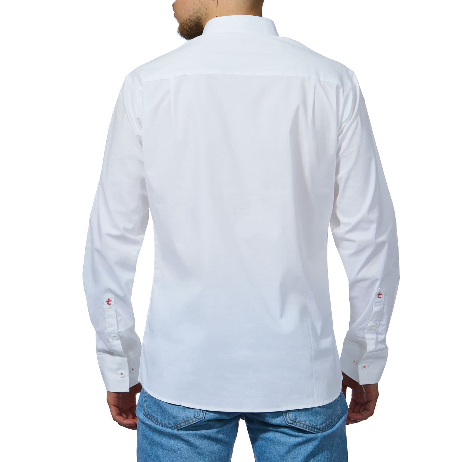 Das Herrenhemd in weiß überzeugt durch seinen hohen Tragekomfort in angesagtem Design und geschmackvoll inszenierten Details an Kragen, Ärmelschlitzen und Knöpfen, die teilweise mit rotem Garn genäht sind.