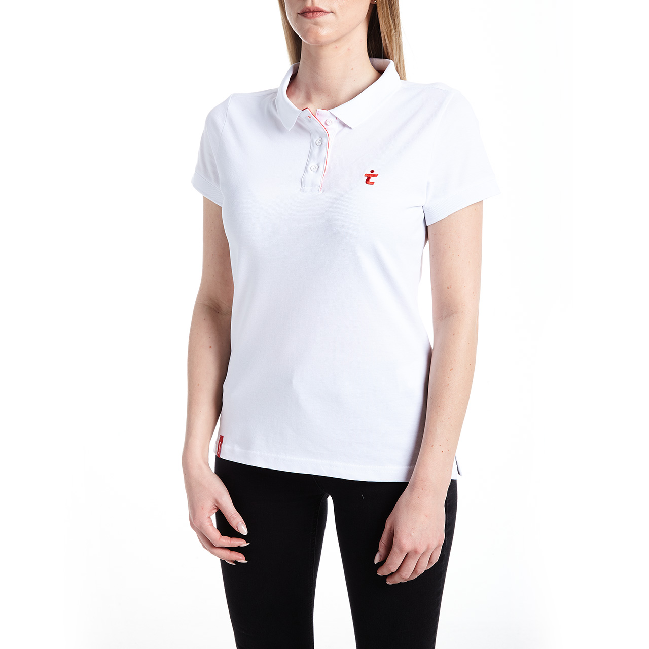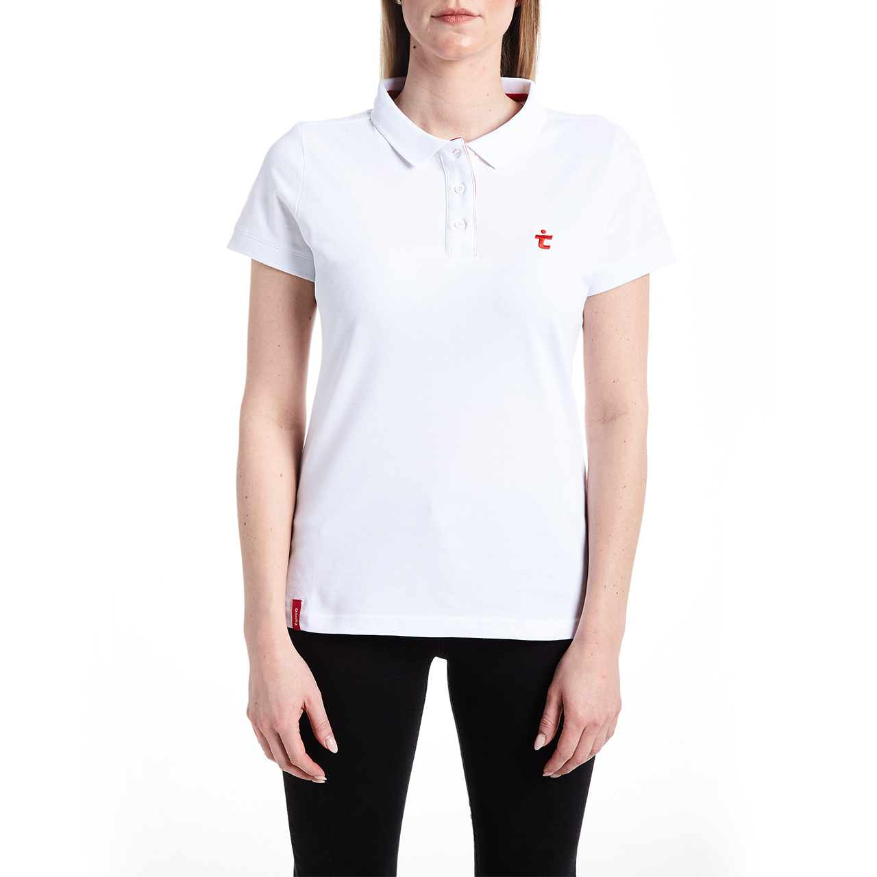 Das hochwertige Damen Poloshirt ist in drei unterschiedlichen Farben erhältlich. Es verfügt über ein eingesticktes "t" auf der linken Brustseite und über ein zusätzliches Flaglabel am Saumrand. Die farblich hinterlegte, dreigliedrige Knopfleiste ist ein zusätzliches Highlight. Durch den hohen Baumwollanteil ist das T-Shirt sehr angenehm zu tragen und weist eine hohe Atmungsaktivität auf.