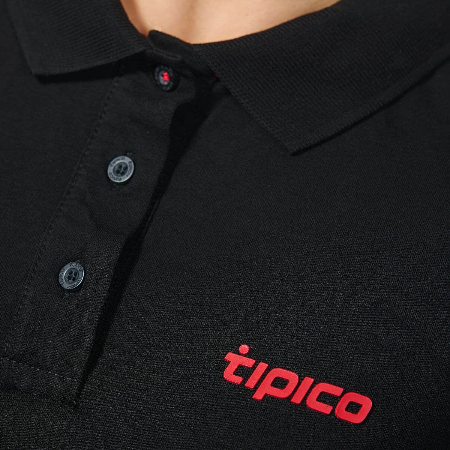 Das hochwertige Damen Poloshirt ist in der Farbe schwarz erhältlich. Es verfügt über ein High Density Tipico Logo auf der linken Brustseite und am Nacken, sowie über ein zusätzliches Flaglabel am Saumrand. Ein zusätzliches Highlight ist das rote Garn am obersten Knopf. Das Poloshirt aus 94% Baumwolle und 6% Elasthan besitzt außerdem eine polygiene Ausrüstung, welche unangenehme Gerüche bindet und zersetzt.