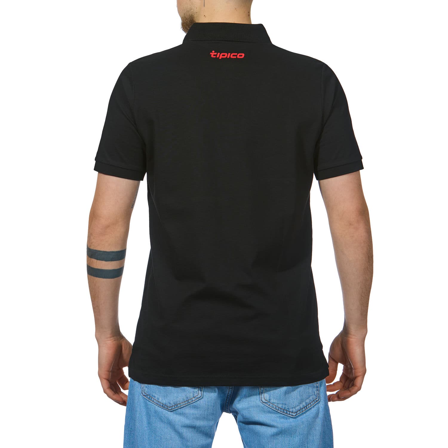 Das hochwertige Herren Poloshirt ist in der Farbe schwarz erhältlich. Es verfügt über ein High Density Tipico Logo auf der linken Brustseite und am Nacken, sowie über ein zusätzliches Flaglabel am Saumrand. Ein zusätzliches Highlight ist das rote Garn am obersten Knopf. Das Poloshirt aus 94% Baumwolle und 6% Elasthan besitzt außerdem eine polygiene Ausrüstung, welche unangenehme Gerüche bindet und zersetzt.