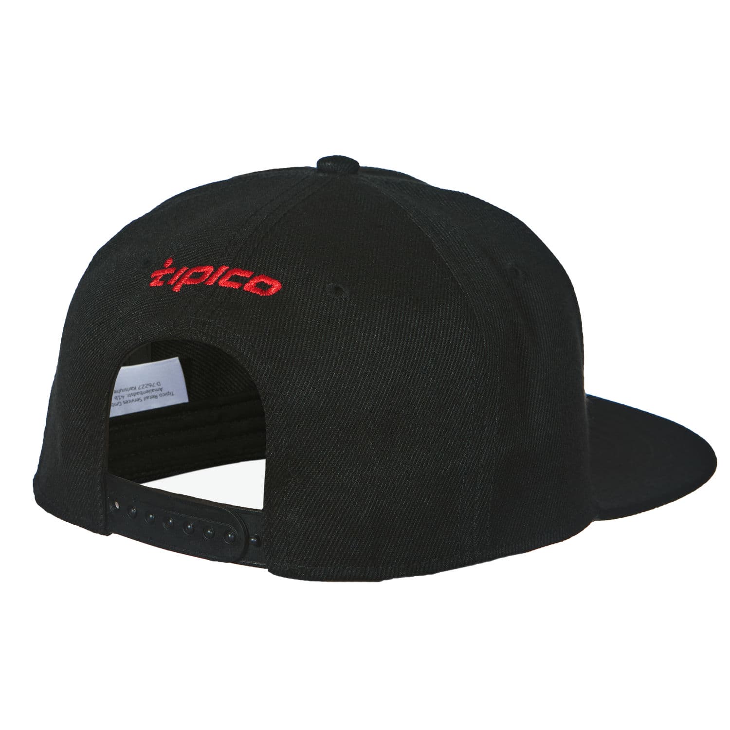 Die hochwertige Tipico Snapback in der Farbe schwarz mit geradem Schirm verfügt über ein auffällig eingesticktes Tipico Logo in Rot auf der Vorder- und auf der Rückseite. Der Plastik Snap-Verschluss lässt sich variabel an den jeweiligen Kopfumfang anpassen. Der leichte Stoff bietet ein angenehmes und leichtes Tragegefühl.