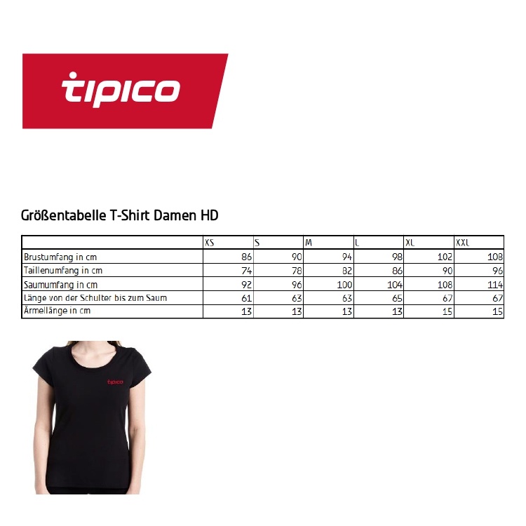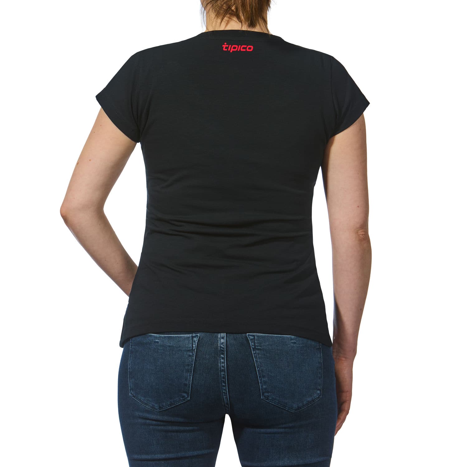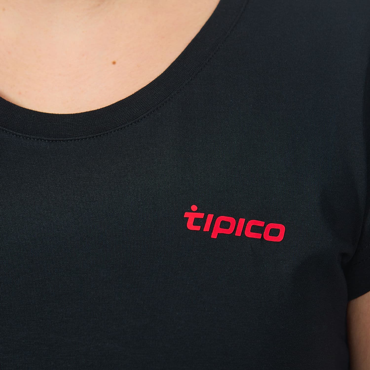 Das hochwertige Damen T-Shirt ist ausschließlich in der Farbe schwarz erhältlich. Es verfügt über ein High Density Tipico Logo auf der linken Brustseite und am Nacken, sowie über ein zusätzliches Flaglabel am Saumrand. Durch den hohen Baumwollanteil ist es sehr angenehm zu tragen und weist eine hohe Atmungsaktivität auf.