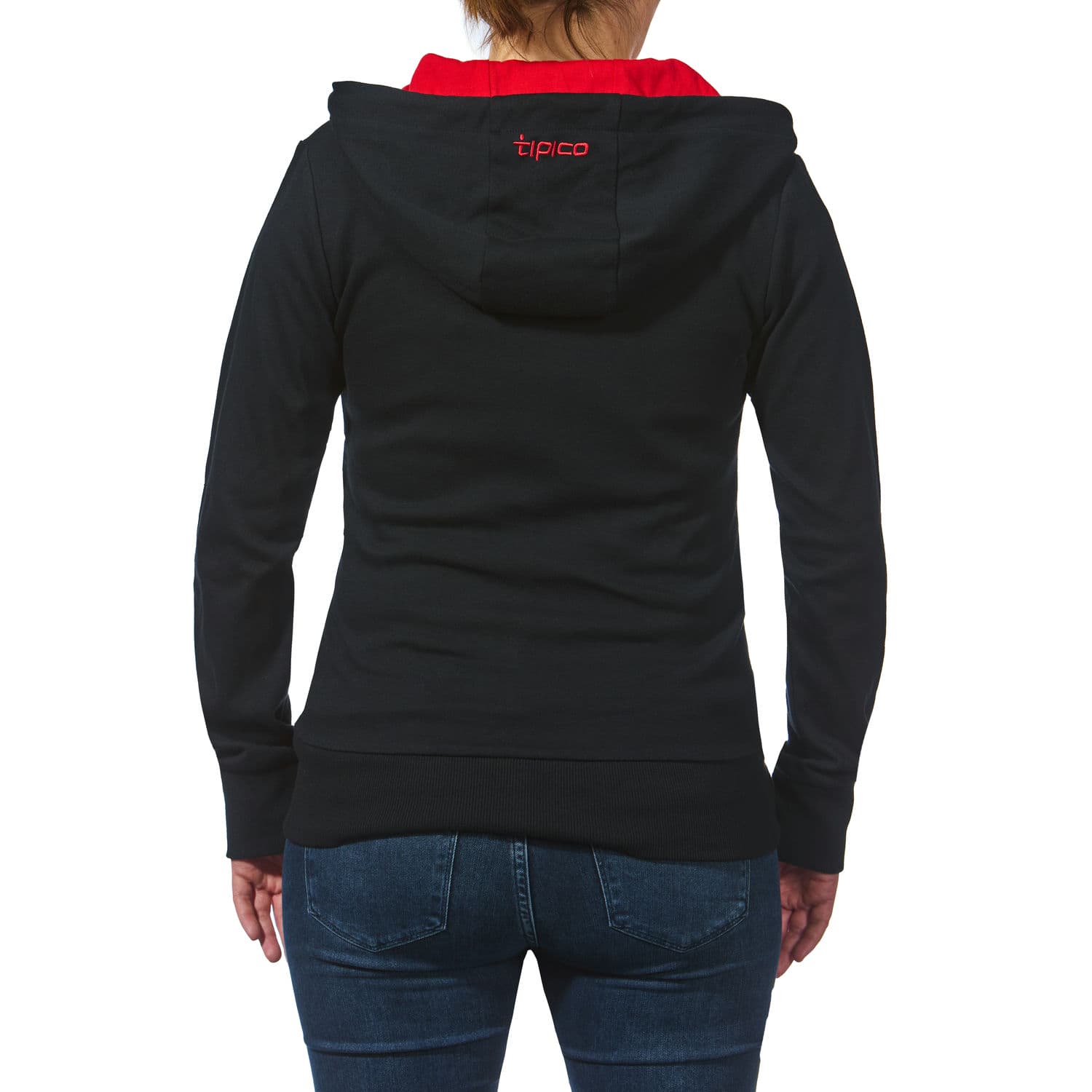 Die Zip Jacke mit Kapuze ist aus hochwertigem Interlock-Material gefertigt. Durch den hohen Baumwollanteil weist die Zip Jacke einen hohen Tragekomfort auf und ist atmungsaktiv. Die Jacke verfügt über eine Kapuze mit Kontrastfutter in der Farbe rot, praktische Seitentaschen mit Reißverschluss und gebrandete Zipperpuller. Auf der linken Brust findet sich ein eingesticktes Tipico Logo, das zusätzlich auf die Kapuze gestickt wurde. Rote Kordeln und gerippte Bündchen runden das ansprechende Design ab.