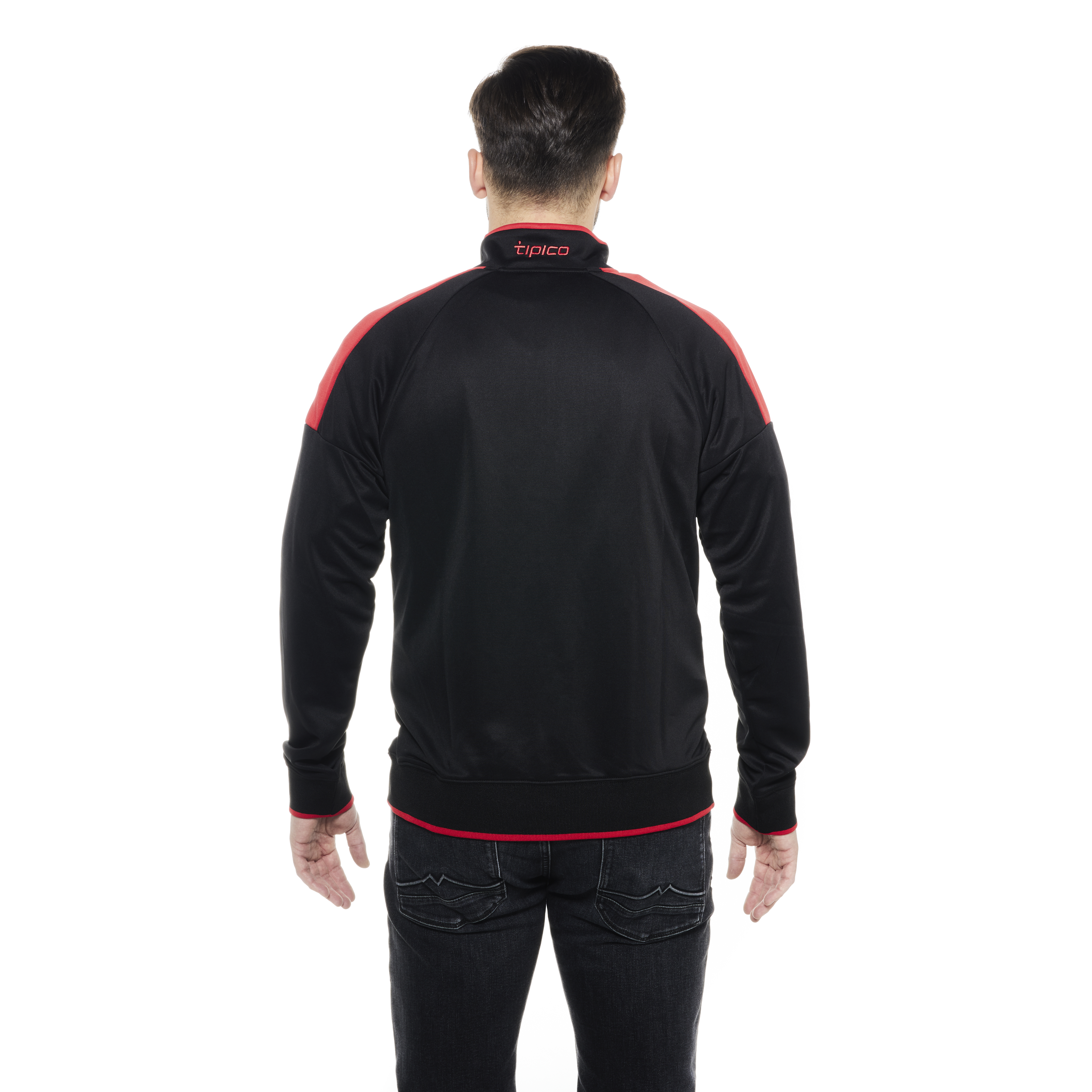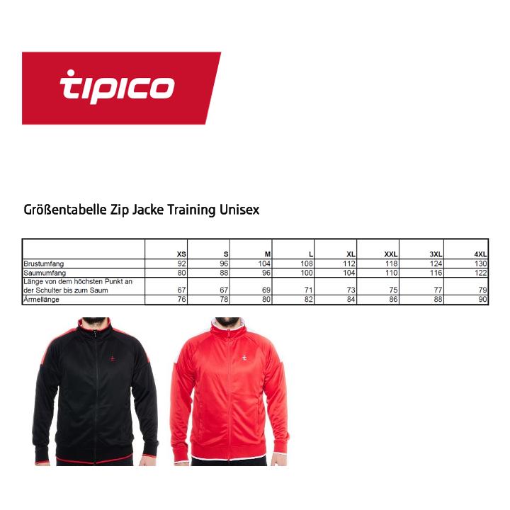 Die Zip Jacke Training Unisex in der Farbe schwarz-rot verfügt über ein eingesticktes Tipico Logo im Kragenbereich der Rückseite und über ein eingesticktes "t" auf der linken Brustseite. Farblich hervorgehobene Teilelemente machen die Zip Jacke zu einem trendigen Highlight. Zusätzlich verfügt die Jacke über zwei seitliche Einschubtaschen mit Reißverschluss.